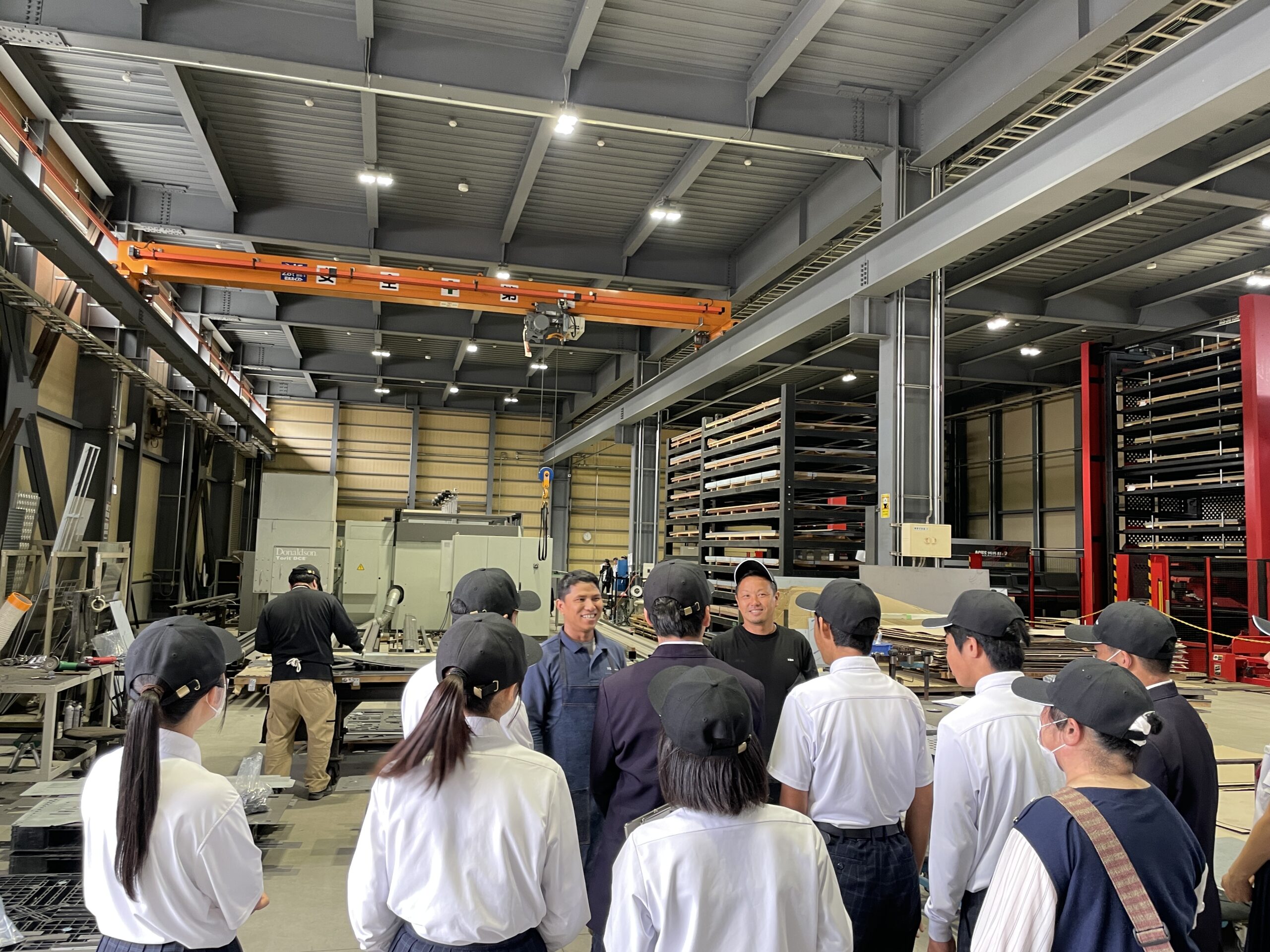 その後、実際に工場に行って、モノづくりの流れや様子、そしてそこで働く社員の様子を見てもらったんです。生徒さん達は興味を持ってしっかりと見学してくれていました👍
