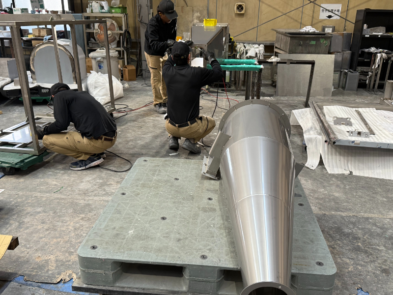 食品機械製品も多くなっていて、溶接焼けを取る作業も人をかけて進められています。