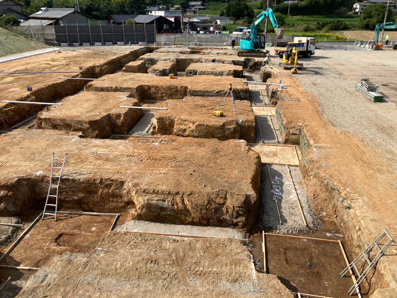 その後、建物の場所や大きさが想像できる、基礎の穴が掘られていきました。