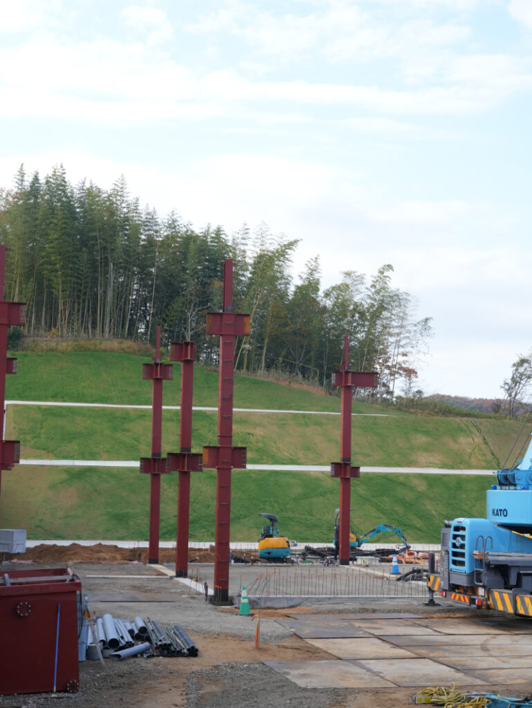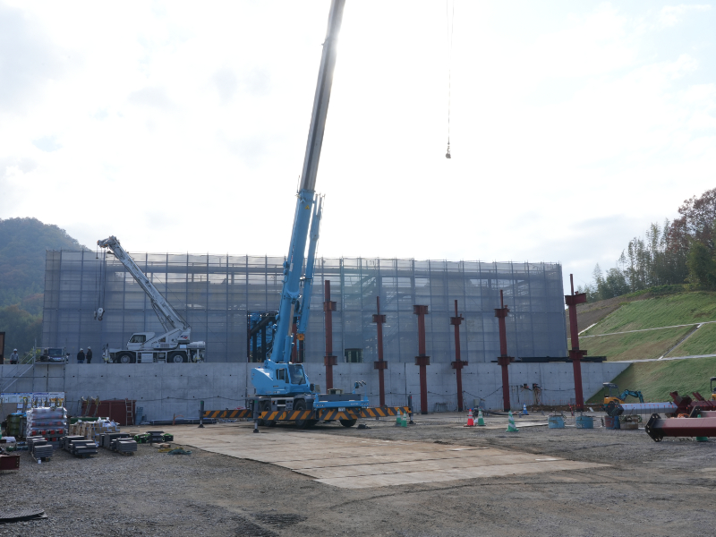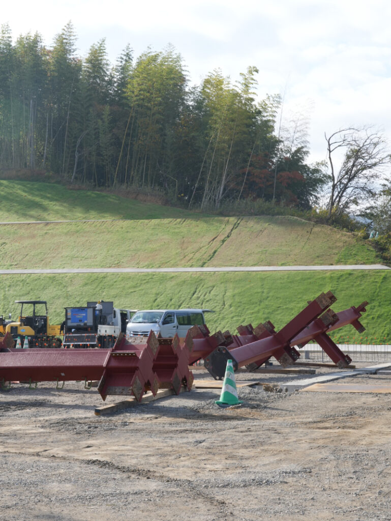 先に柱が立ち始めた「新工場」に続いて今日から柱が立ち始めている「LAB棟」です。