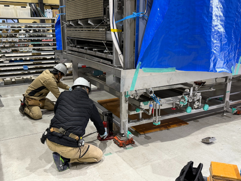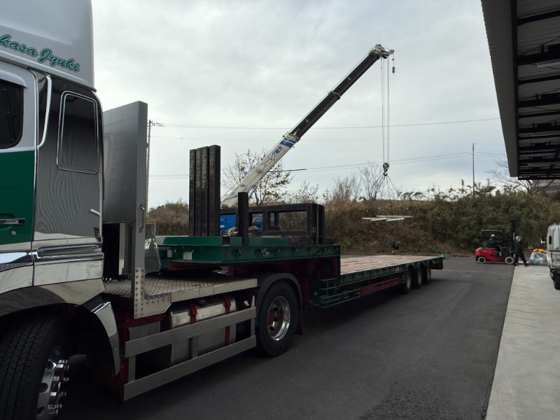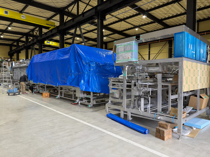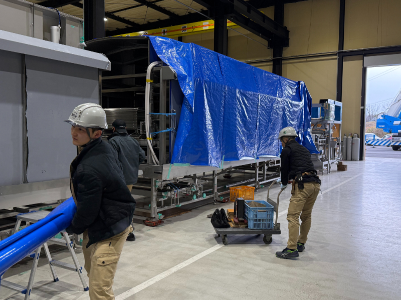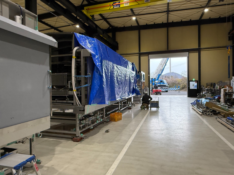 そんな中ですが、完成したおよそ25メートルのお豆腐の自動成形機が搬出されました。